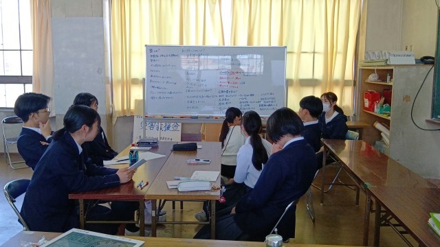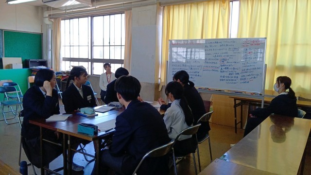 生徒会役員で、前期の活動テーマを考えていました。いろいろな課題を挙げながら、住中をよりよくするための話し合いが行われていました。