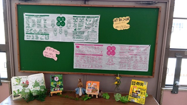 1年生のフロアです。防災についての掲示物がありました。ここ数日、日本各地で大きな地震が発生しています。ご家庭でも今一度、避難場所・避難グッズの確認などをお願いします。