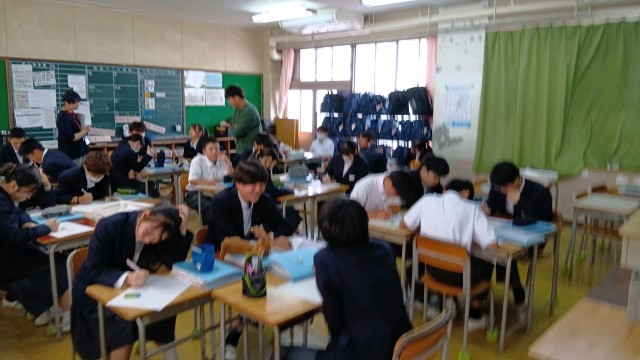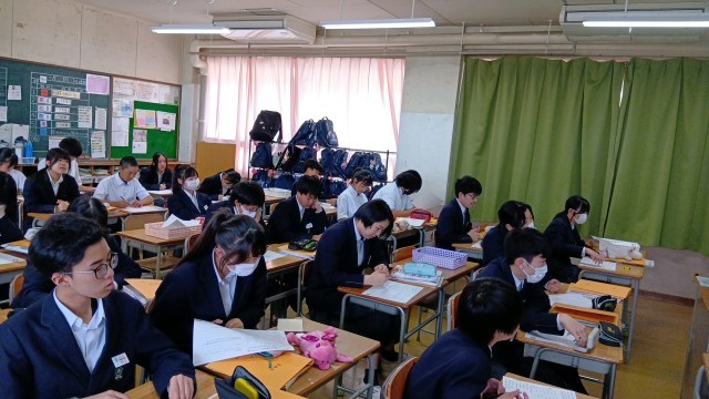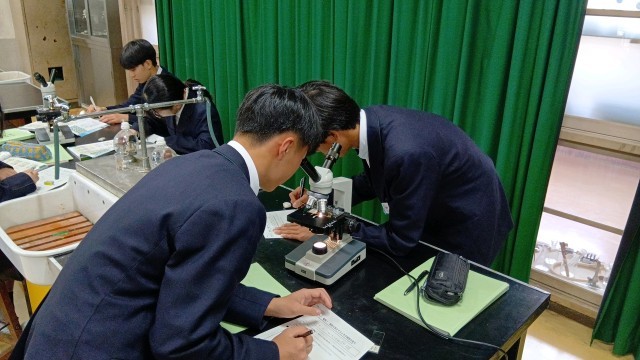 理科A・体育・理科B・英語A・数学Aです。理科Aでは、顕微鏡を使って細胞分裂の様子を観察していました。