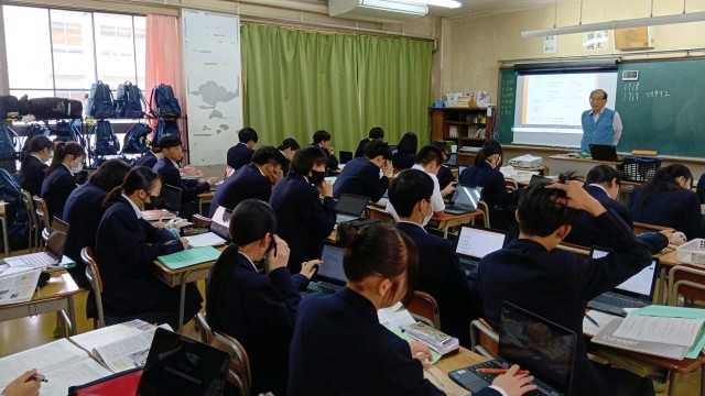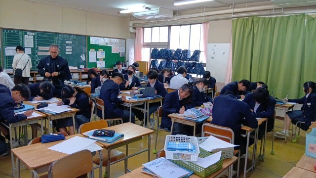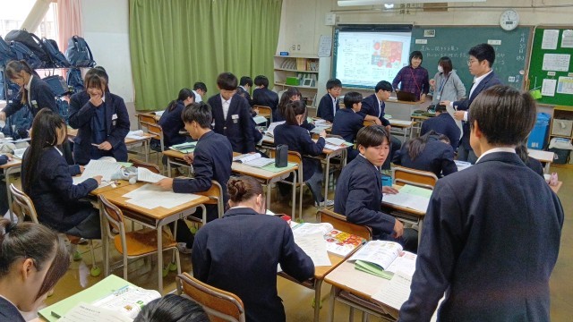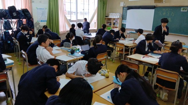 数学A・数学B・社会・理科A・社会です。理科Aでは、クラス全員で問題の交流をしていました。