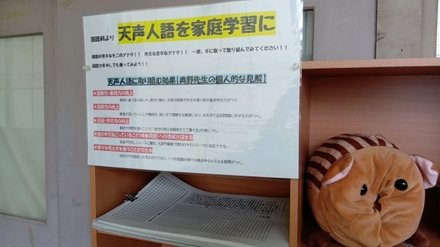 3年生の学年職員室前には、国語科からの家庭学習用教材が置かれています。一度、家で取り組んでみてください。