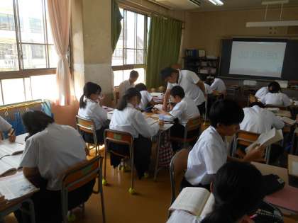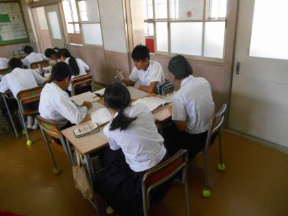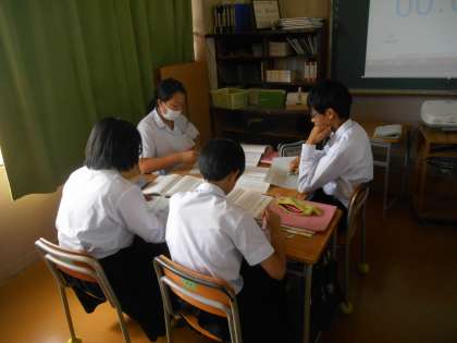 平家物語の冒頭の部分の現代語訳を班ごとにやっているところです。