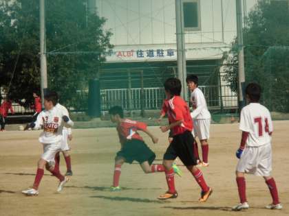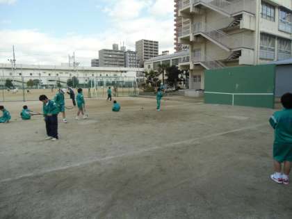 土曜チャレンジの合間にグランドを見ると、大声を上げてやってるやってる。