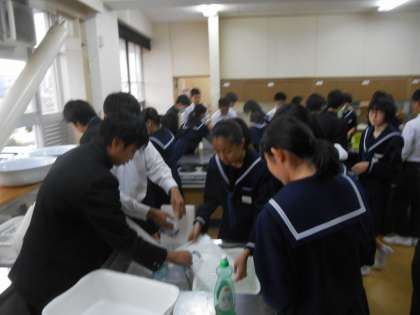 近いうちに調理実習が行われます。今日はその準備で食器などをきれいに洗っていました。