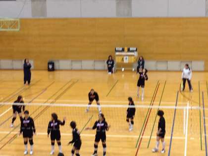 市PTAバレーボール大会に来ています。第一試合は、残念ながら、氷野小学校に2対1で惜敗しました。今、第二試合、南郷小学校と試合中です。1セットを取りました。今もリードしています。