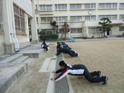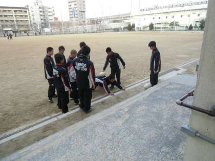 ラグビー部キャプテンが部員にがスクラムの姿勢を指導していました。