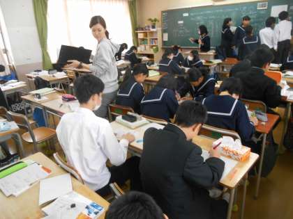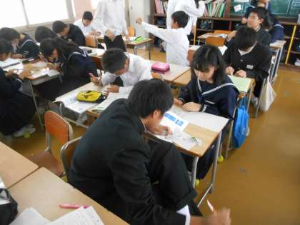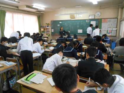 生徒が学習活動をしているところを先生は、観察しつつ評価していっています。