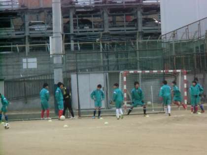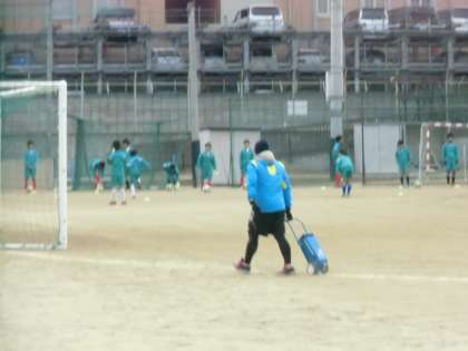 おはようございます。1枚目は体育科の新谷先生が、体育の授業の持久走のラインを引いています。