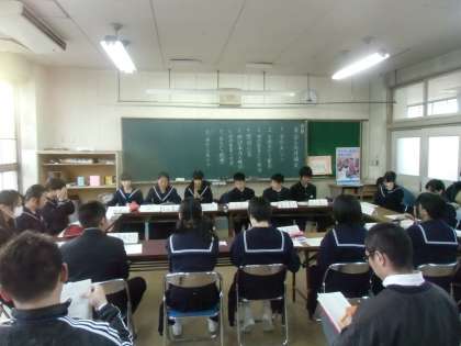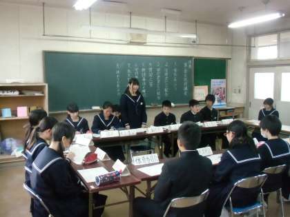 第3回生徒評議会が今日の放課後にありました。生徒会役員は、ユニセフについて、エコキャップの分別。1年生委員長会は、百人一首大会の反省、協力してそうじをする、班長に自覚をもってもらう、2年委員長会は、「2年生がんばりま表」(授業態度がゆるくなっているので、授業担任にその時間の態度の点をつけてもらって、コンクールにする)について、等々の報告がありました。