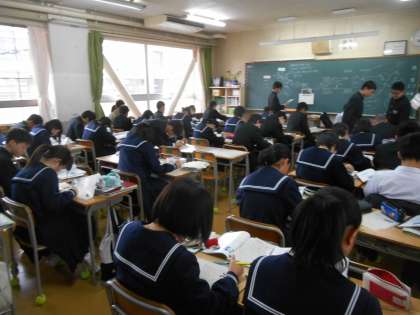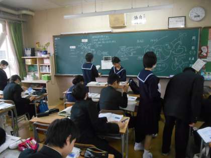 個人思考で問題を解き、答え合わせをして、これから学び合いに入るところだと思います。