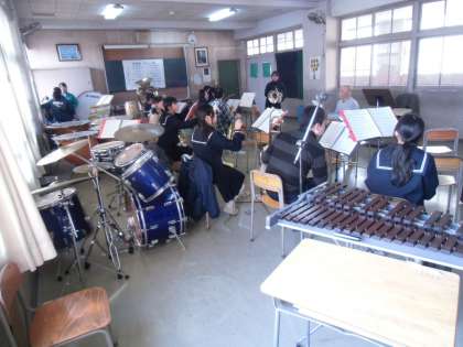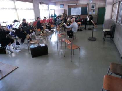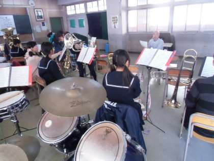 来る2月16日14時サーティホールで大東ウィンドオーケストラの演奏会があるそうです。そこになんと住道中学校吹奏楽部がゲストとして呼ばれました。東大阪市の盾津東中学も呼ばれたそうです。それで、昨日、大東ウィンドオーケストラの方たちが6人ほど来られて指導していただきました。