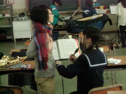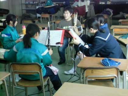 各楽器に分かれて細かく指導もしていただきました。あとで、部員の中学生に聞いたところ、とても分かりやすく教えていただいたそうです。ありがとうございました。