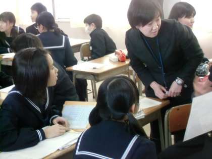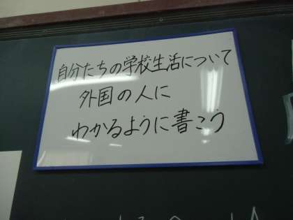 写真は、グループに分かれて知恵を出し合っているところです。森本先生とアシュリー先生がグループに入ってどれくらい理解しているか聞きとっています。
