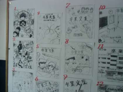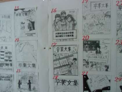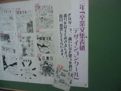 写真は、3年生の卒業文集の表紙コンクールです。ずっと大事にされる文集の表紙です。力が入りますね。