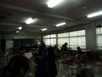 吹奏楽部が今から朝練を始めるところです。元気にあいさつしてくれました。
