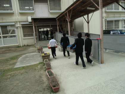 今日もスムーズに運んでくれました。給食を取りに来る生徒のほとんどは笑顔です。友だちとワイワイ言いながら取りに来るのが楽しいのと、給食が食べられるのが楽しいのと両方でしょうか。