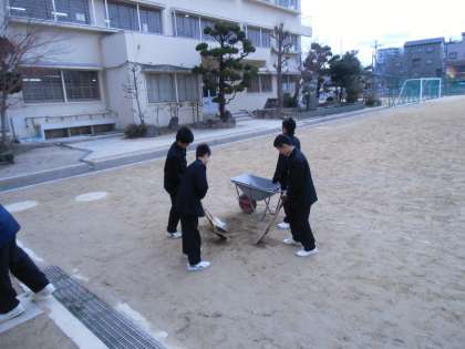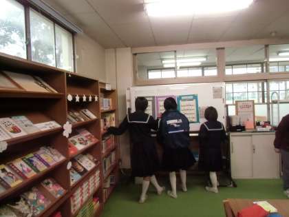 体育委員会がグランドを聖地してくれました。図書委員をのぞくと委員会が終わったところでしたが、図書委員が本棚を見ていました。