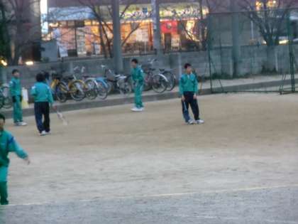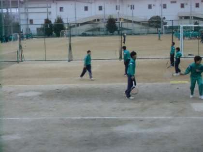 グランドで寒風の中、男子テニス部が練習していました。しっかり練習していました。