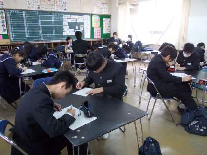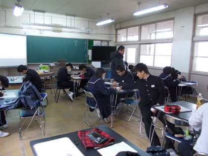 昨日は、3年生の私立等の入試でした。すでに受験を終えた生徒や今回は受験しない生徒は中学校に来て勉強していました。その時の様子です。
