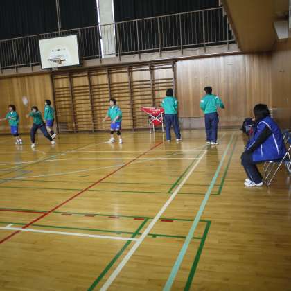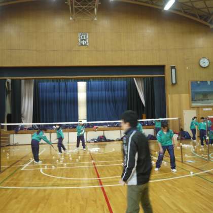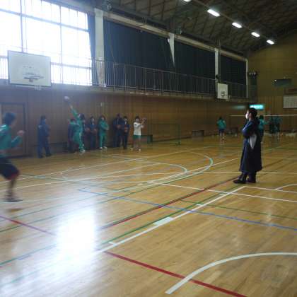 今朝はバドミントン部が朝練をしていました。バド、男子バスケ、女子バレーとも顧問がしっかりと練習を見ています。