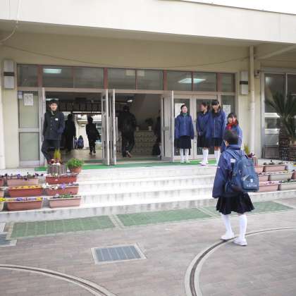けさもがんばってくれました。先生たちも朝のあいさつ運動に参加しています。