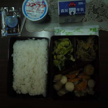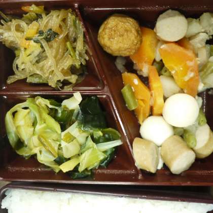 今日の給食は、洋風おでん、海そうサラダ、和風ドレッシング、小松菜と春雨の炒め物、ヨーグルト(プラス)でした。今日もドレッシングをかけるのを忘れてしまいました。