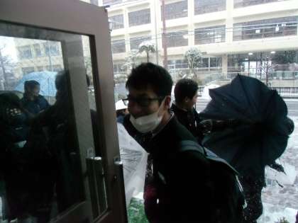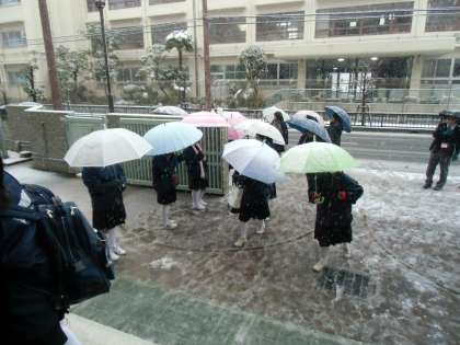 いやあ、昨日大雪にはほんとに振り回されました。公立前期入試の出願日だったからです。朝から、近鉄バス、京阪バス、住道駅と何回も電話をし、運行状況の確認。やっと運転再開、駅に着くと「せんせい、まだ、電車来ません。」「えーっ。」かと思うと、動いているはずの近鉄バスが「せんせい、運転中止て、張り紙貼ってます。どうしたらいいですか。」の電話。というわけで、数人は月曜日に出願となりましたが、ほとんどの人は出願をできました。
