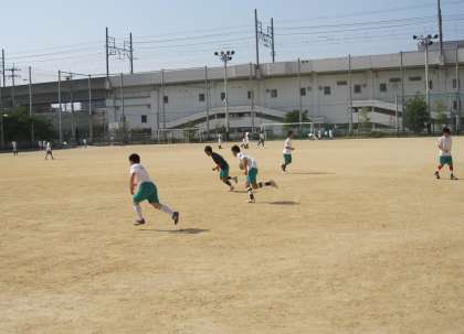 ラグビー部は先輩が後輩にきっちり指示を出しながらの練習です。あいさつもしっかりしてくれました。