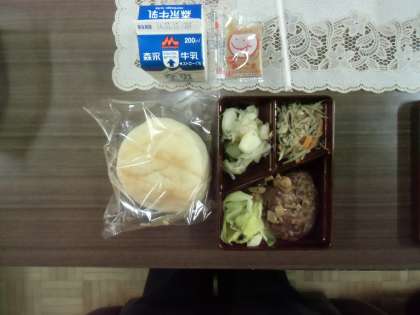 今日の給食にはメロンパンがついていました。給食にもメロンパンがつくのですね。