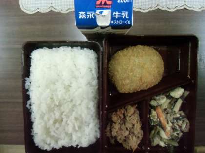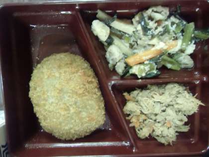 今日はコロッケ定食でした。かぼちゃが入ってたのかな、コロッケに。