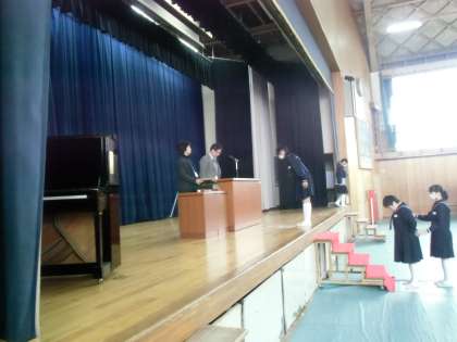 今日の午後、卒業式の予行が行われました。卒業生入場の写真と証書授与の写真です。