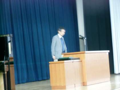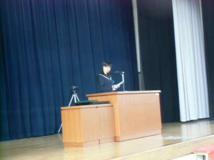 大東市長が卒業式に来られます。写真の村田先生は市長の代役で登壇しました。2枚目は答辞を読む生徒です。