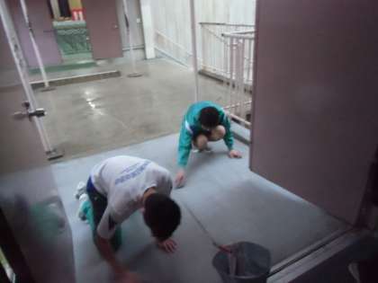 準備中もずっと雨でした。その雨の中、校舎から体育館に出るドアの付近を長いことぞうきんで拭き掃除をしてくれた人たちです。感心より感動しました。寒い中、ほんとにありがとう。