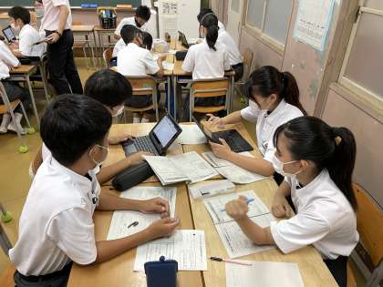 2年生はSDGsプレゼン準備を行いました。気になる開発目標をそれぞれの班で決めてから、実際にどのようなアクションプランを考えていけるかが大切になります。考えることで学びが深まります。まだまだ知らないことが多いですが、みんなでこの活動を通して調べたい欲求をいかしながら学びを深めていきたいと思います。