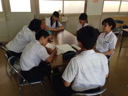 生徒会役員は、明日(10日)の集会の役割分担と発表する内容の打ち合わせをしています。