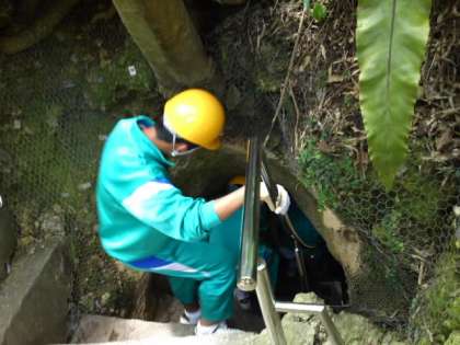 4組は糸数壕の中で平和学習しています。