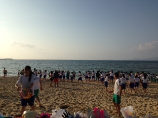 ホテルに着いて入館式が終わり、みんなビーチで楽しそうに遊んでいます。
