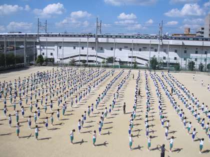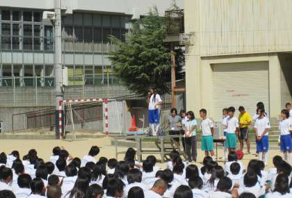 気温が上がる中でしたが、今日は礼やラジオ体操の練習をしっかりしました。