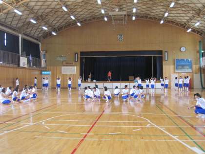 女子も各自が動きを覚えるだけでなく、体形移動したりカウントを数えながら動かなければ動きがずれてしまい、クラスが一つにならなかったりポンポンの色の流れが作れなかったりする難しいところの練習をしています。