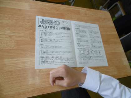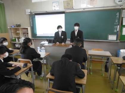 全クラスで学級委員の司会のもと、学級通信等を使いながら、学級目標について話し合いが行われていました。「本気」を感じる学級会でした。