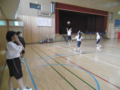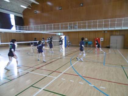 体育館ではバレー部と女子バスケットボール部が練習をしていました。どちらの部も週末の公式戦に向けて、とてもいい雰囲気の中で練習をしていました。