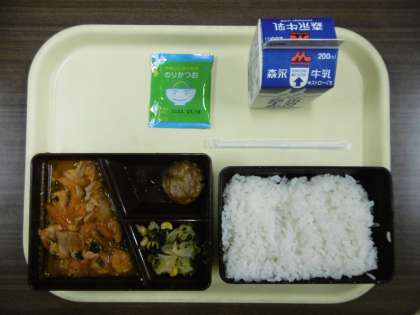 今日のメニューは、白ごはん、鶏肉のチリソース煮、味噌まんじゅう、ポパイソテー、ふりかけ、牛乳です。始業式から今日でちょうど1週間。そろそろ疲れが出てくる頃です。週末は感染予防をしつつ、しっかり体調を整え、来週に備えましょう。