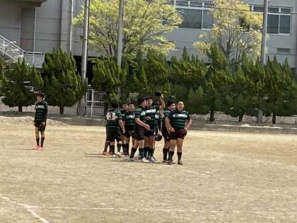 ラグビー部が北河内大会2回戦を接戦の末、見事29対14で勝利しました。相手は強豪の深野中学校でした。よくがんばりました。