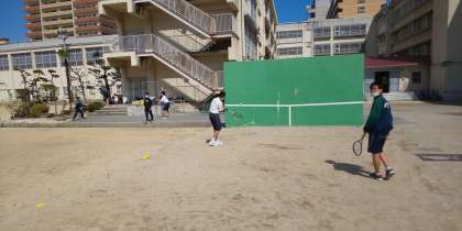 午後からは男子テニス部が練習をしていました。どの部活動の生徒も本当によくあいさつをしてくれます。一度立ち止まって、相手の顔を見てからあいさつをする生徒もいて、いつも感心しています。住道中学校のいい伝統です。これからも是非、続けましょう。