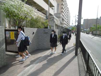 今朝の登校風景