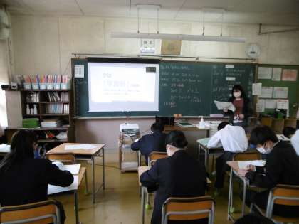 2年生の社会と数学の様子です。私たち教員も積極的にICT機器を活用しています。