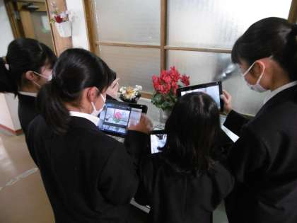 1年生が理科の授業で使用する花の写真をタブレットで撮影していました。またもや感心しました。