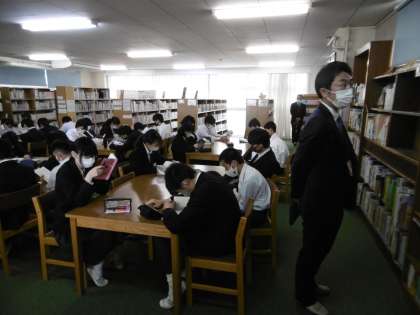 大東市教育委員会の水野教育長と伊東部長が本校に学校訪問に来られました。年度初めのご挨拶と図書室の授業を見ていただきました。清掃が行き届き、整然と並べられた本を褒めていただきました。授業は3年1組の国語です。