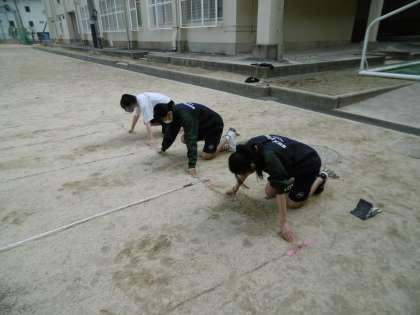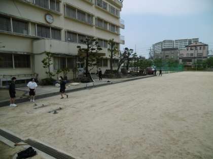 グラウンドや体育館、音楽室を覗いてみると、陸上部、女子バスケットボール部、卓球部、吹奏楽部が元気に練習をしていました。今日は、5つの部で公式戦が予定されています。住道中学校の生徒は、部活動でもカバンや靴をいつもきれいに並べています。