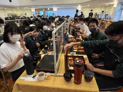 おはようございます。朝起きてオーシャンホールにて朝食中です。